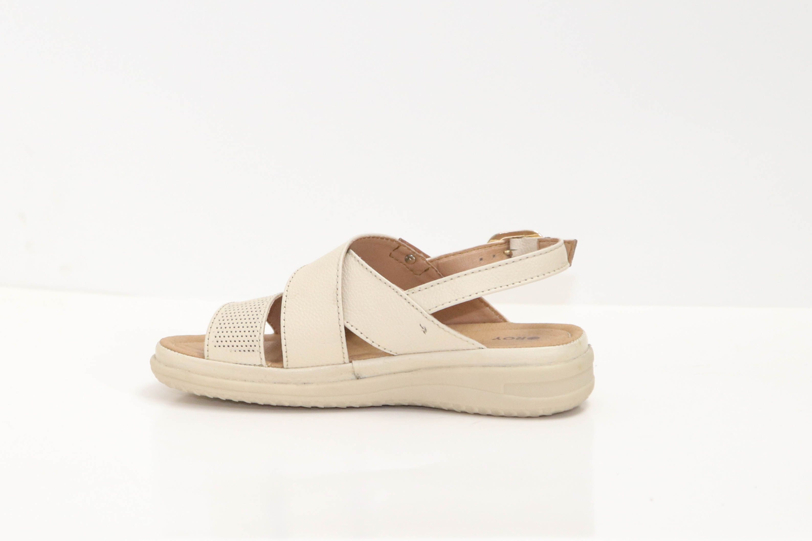 Sandalia casual elaborada en cuero café cristal con una plantilla de forro de cerdo para mayor confort.