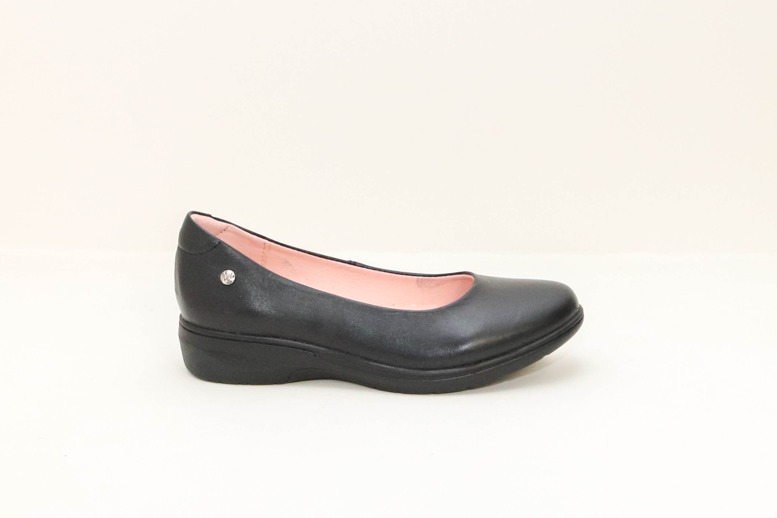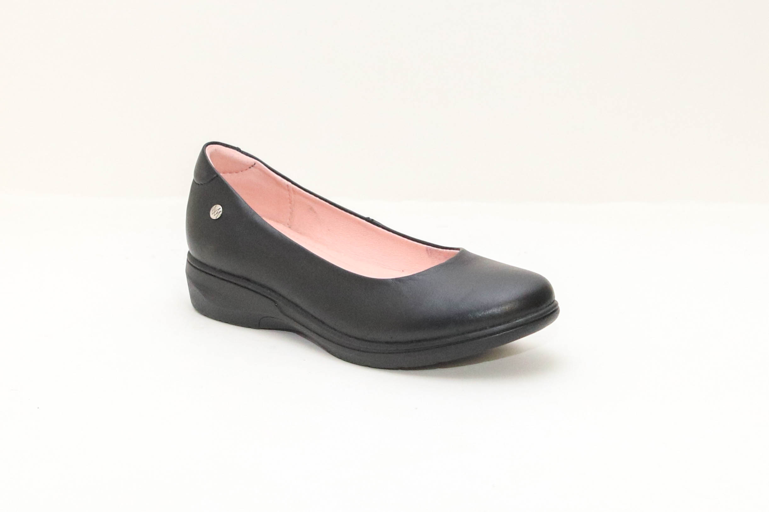 Calzado escolar juvenil, de cuero negro liso lustrable para fácil limpieza. Una mocasina que puede usarse todo el día ,forros transpirables y una plantilla de memory foam 3mm color rosado. Con suela P.U. para un mejor confort y mejor amortiguación al caminar.